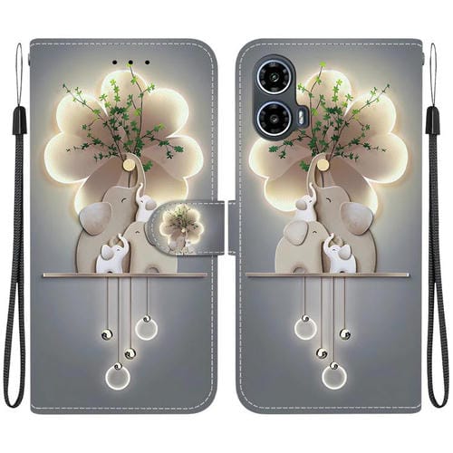Funda de Cuero para Motorola Moto G75 5G con Dibujo de Colores y Textura de Cristal (Elefantes)
