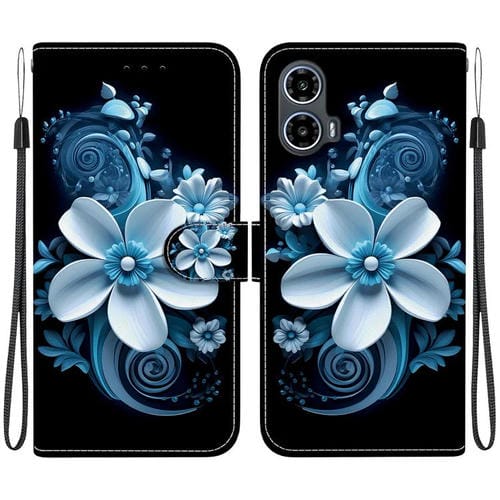 Funda de Cuero para Motorola Moto G54 con Dibujo de Colores y Textura de Cristal (Orquídea Negra)