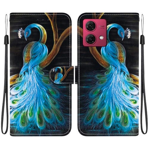 Funda de Cuero Motorola Moto G75 5G con Dibujo de Colores y Textura de Cristal (Pavo Real)