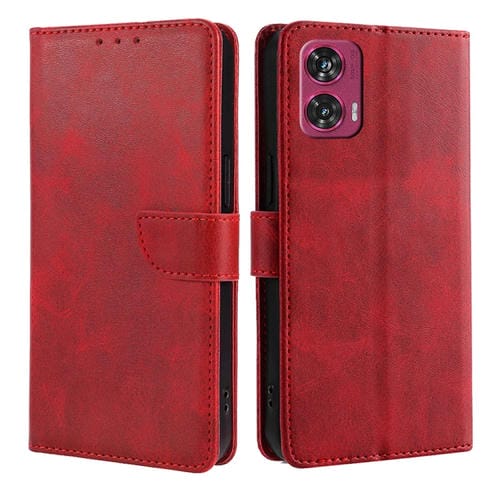Funda de Cuero con Tapa y Hebilla Textura Piel de Becerro para Motorola Edge 50 Fusion 5G (Rojo)