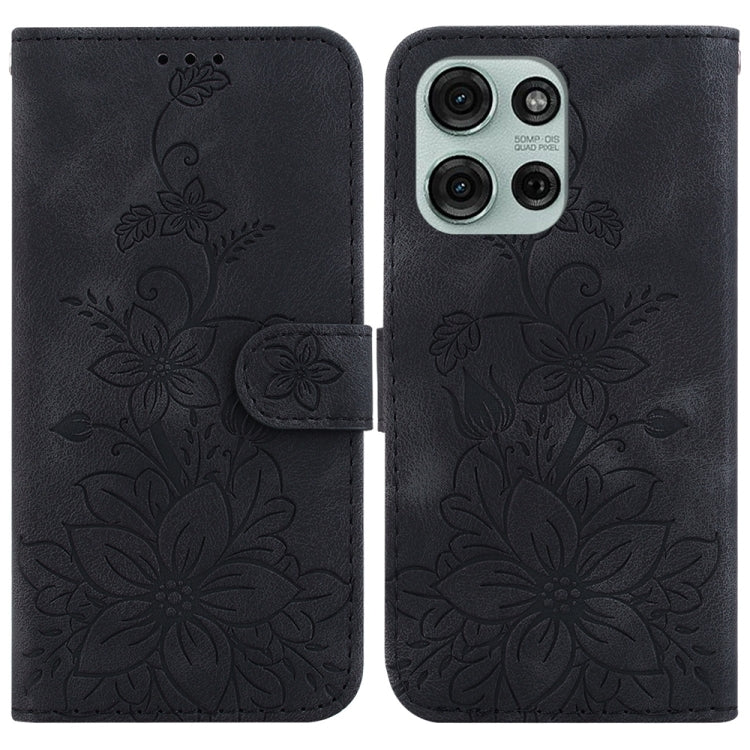 Funda de Cuero con Relieve de Lirio para Motorola Moto G75 5G (Negra)