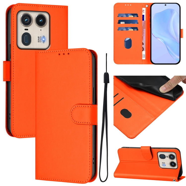 Funda de Cuero con Cordón para Motorola Edge 50 5G con Tacto de Piel (Naranja)