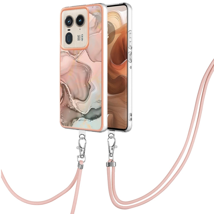 Estuche para Motorola Edge 50 Ultra con Imd Doble Cara y Galvanoplastia Mármol con Cordón (Oro Rosa)
