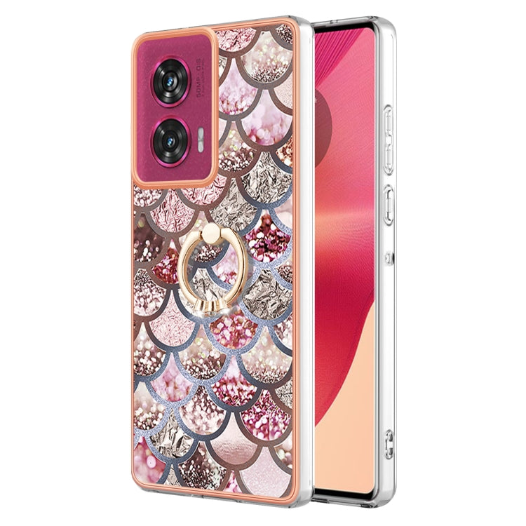 Funda TPU con Patrón Galvanoplastia y Soporte Anillo para Motorola Edge 50 Fusion (Escamas Rosas)