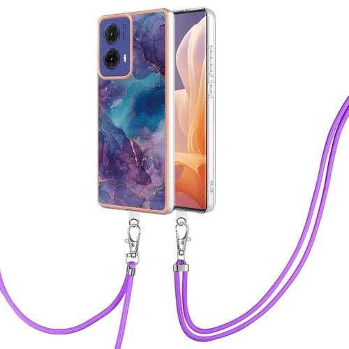 Funda Teléfono Motorola Edge 50 Ultra Imd Doble Cara Galvanoplastia Mármol con Cordón (Púrpura)