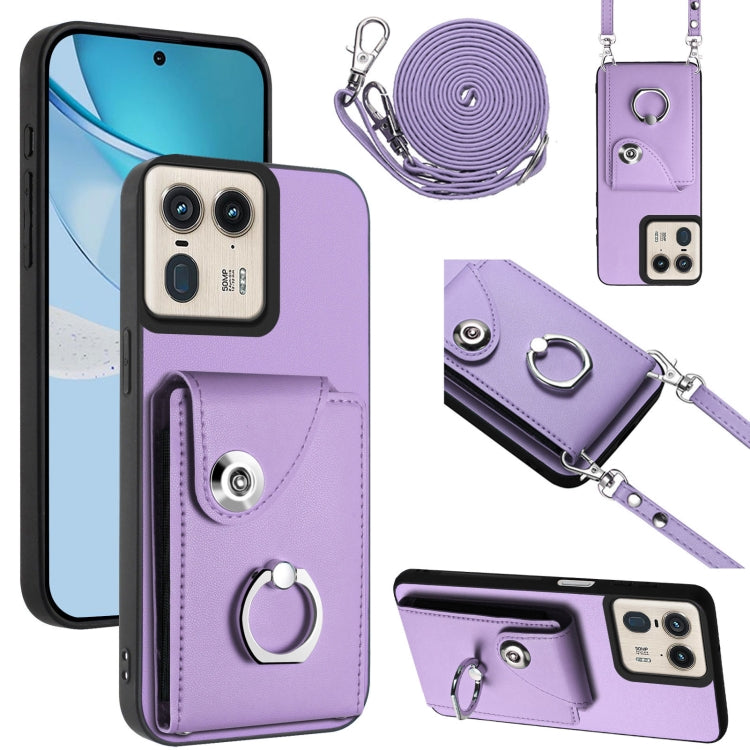 Funda para Teléfono Motorola Edge 50 Fusion Global con Aro, Tarjetero y Cordón Largo (Morado)