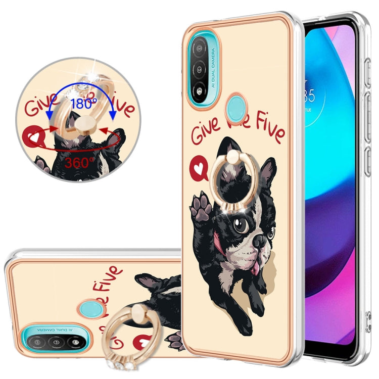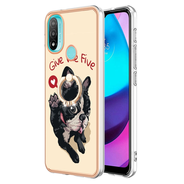 For Motorola Moto E20/E30/E40 Electroplated Double-sided IMD Phone Case with Ring Holder (Lucky Dog)