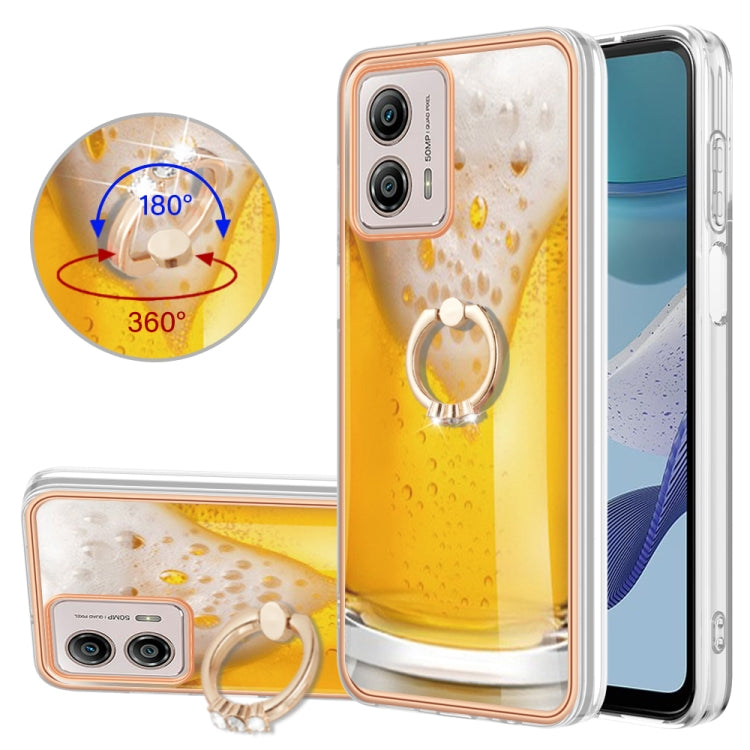 For Motorola Moto G53/G23/G13 Electroplated Double-sided IMD Phone Case with Ring Holder(Draft Beer)