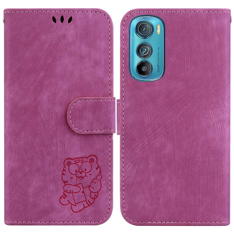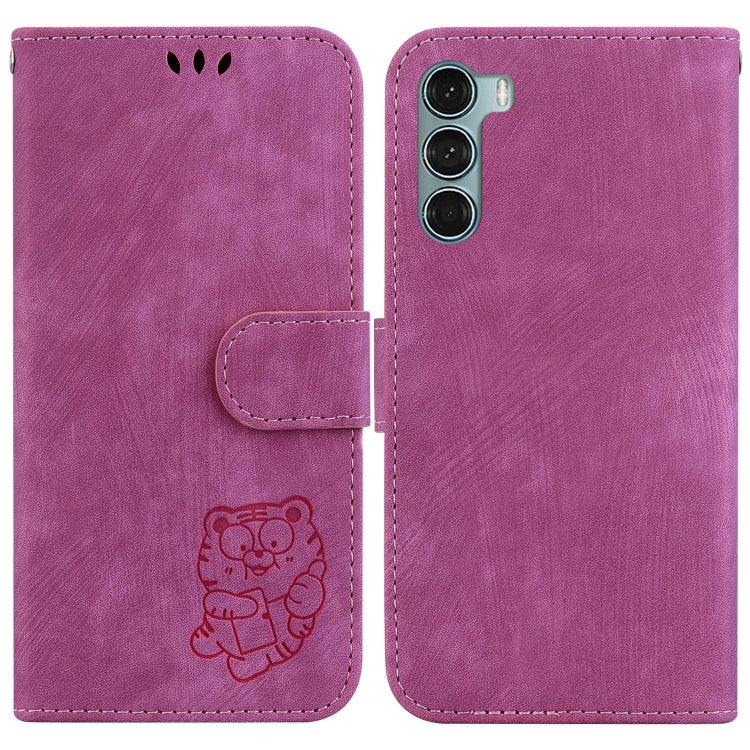 Funda para Motorola Edge 30 de Cuero con Relieve Little Tiger (Rojo Rosa)