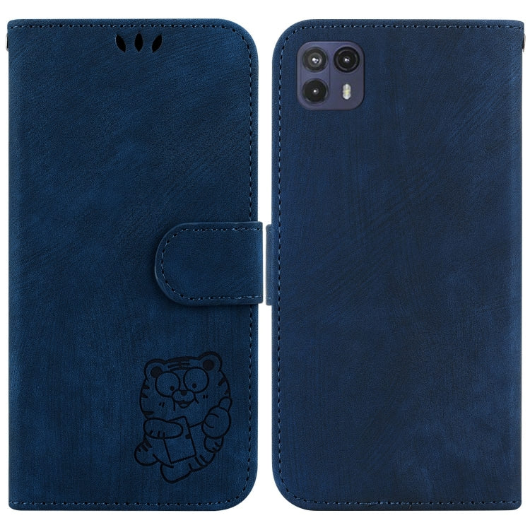 Funda de Cuero para Motorola Moto E13 Little Tiger en Relieve (Azul Oscuro)