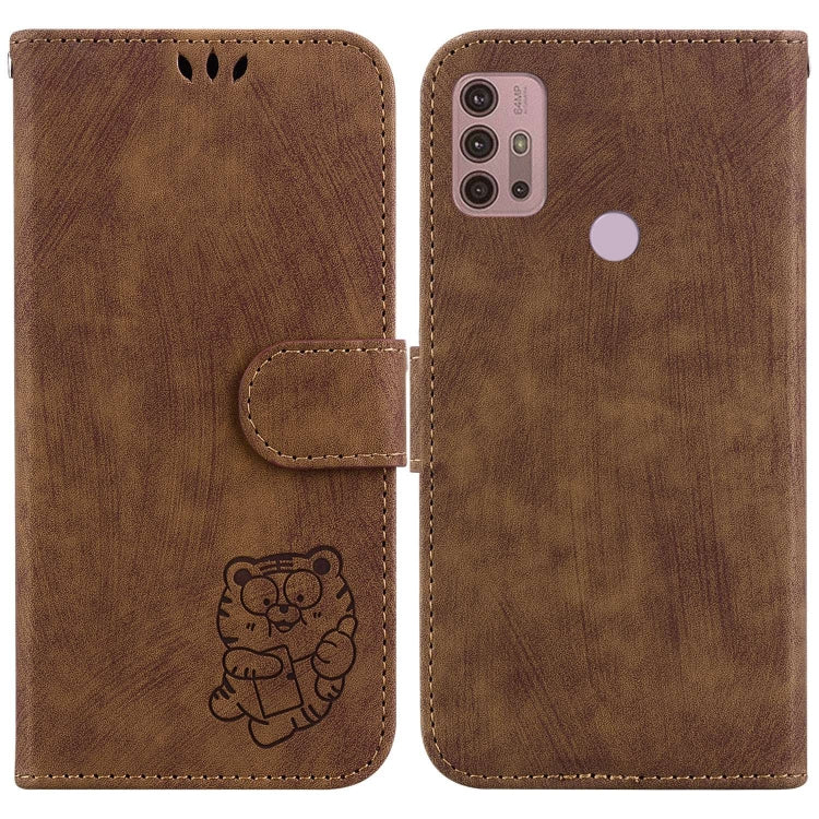 Funda para Teléfono Motorola Moto G30 G10 G20 Cuero Relieve Little Tiger (Marrón)