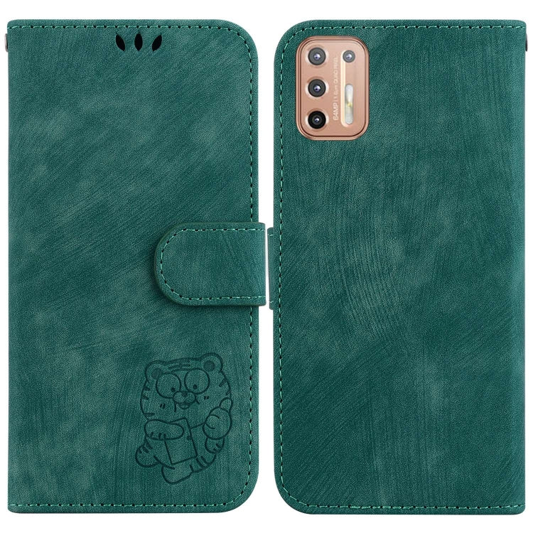 Funda de Cuero para Motorola Moto G9 Plus con Relieve Little Tiger (Verde)