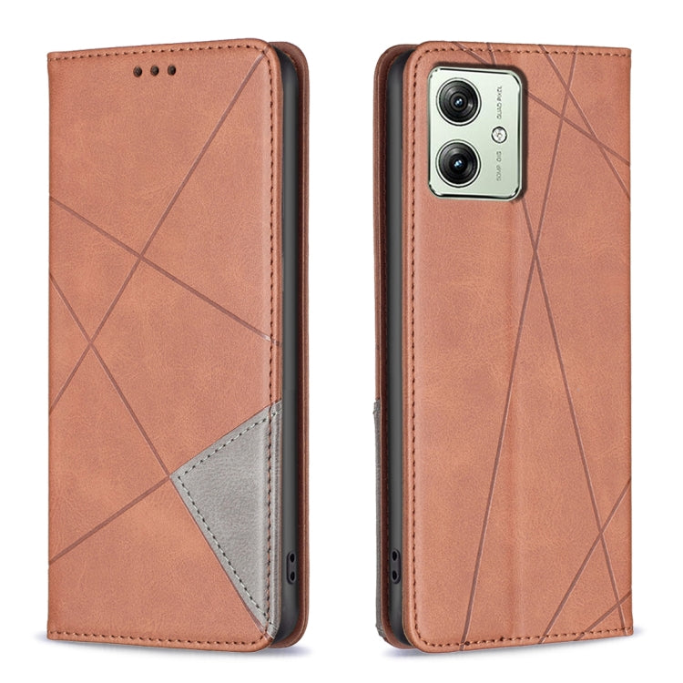 Funda para Motorola Moto G54 5G Eu Edition Cuero Magnético con Textura Rombo (Marrón)