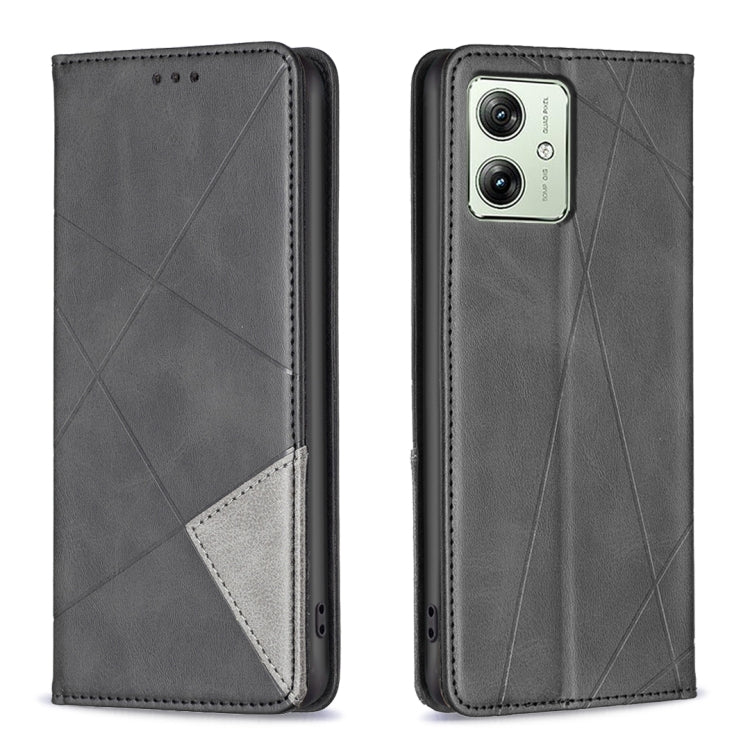 Funda para Motorola Moto G54 5G Eu Edition de Cuero Magnético con Textura Rombo (Negro)