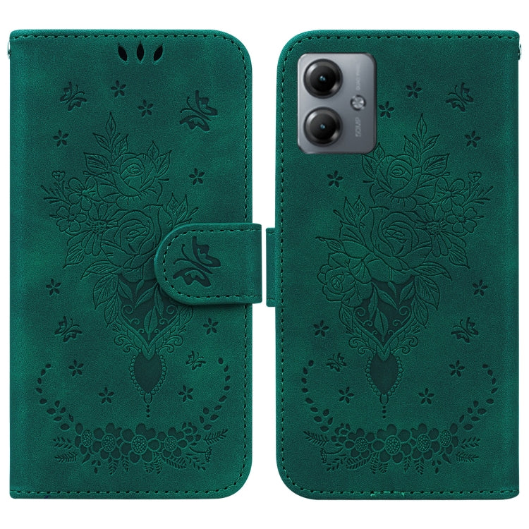 Funda de Cuero para Motorola Moto G14 Butterfly Rose con Relieve (Verde)