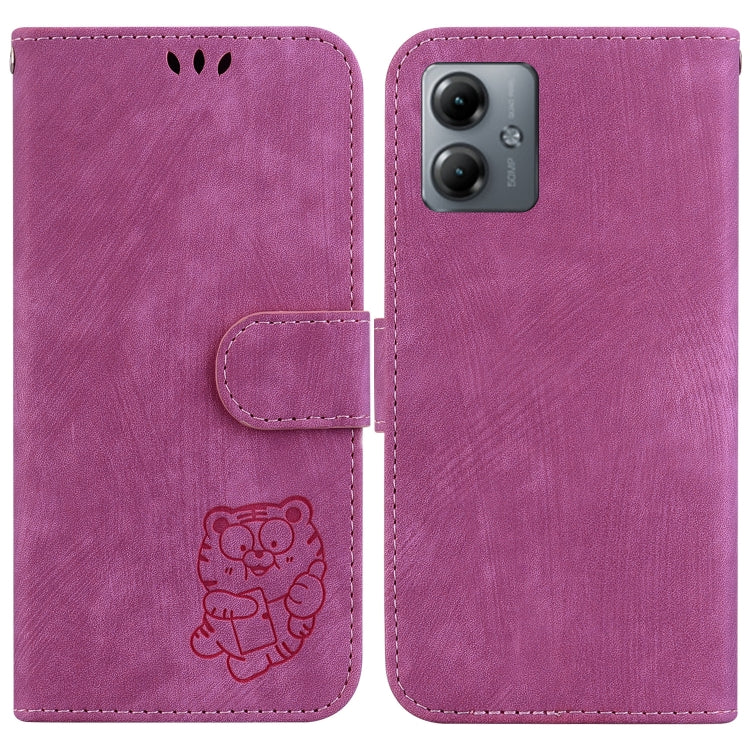 Funda de Cuero para Motorola Moto G14 Little Tiger con Relieve (Rojo Rosa)