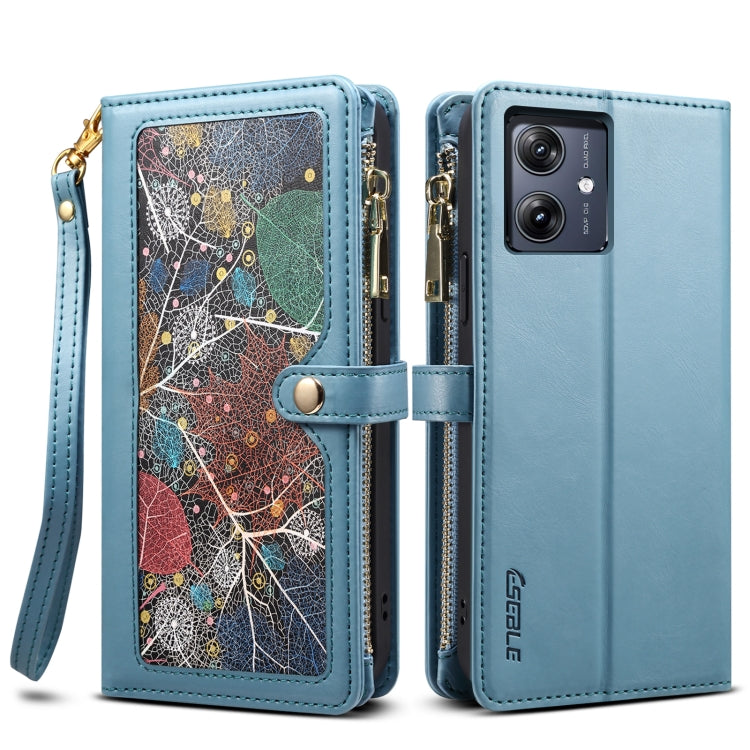 Funda Cuero RFID para Motorola Moto G54 Eseble Star Series con Billetera, Cremallera y Cordón (Azul)