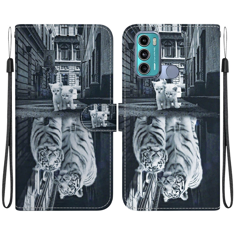 Funda de Cuero para Motorola Moto G60 / G40 Fusion con Dibujo Coloreado (Reflejo de Tigre Gato)