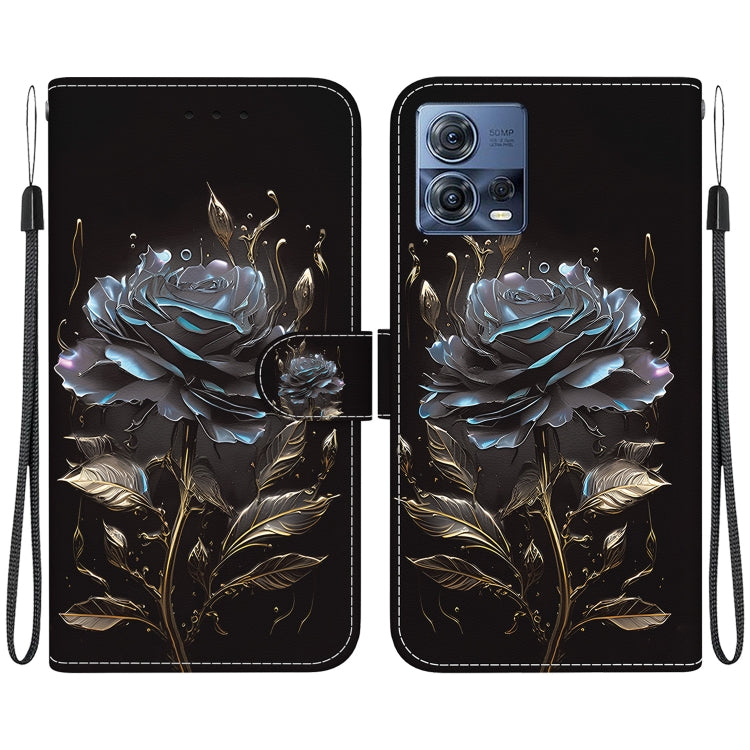 Funda de Cuero para Motorola Moto S30 Pro 5G con Dibujo Coloreado y Textura de Cristal (Rosa Negra)
