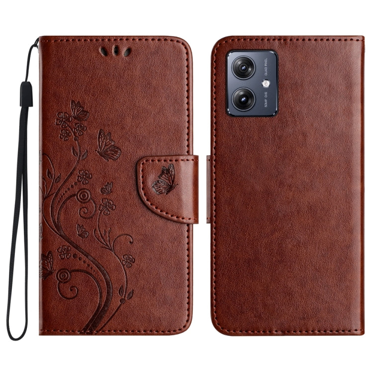 Funda de Cuero para Motorola Moto G54 con Tapa y Patrón de Flores de Mariposa (Marrón)