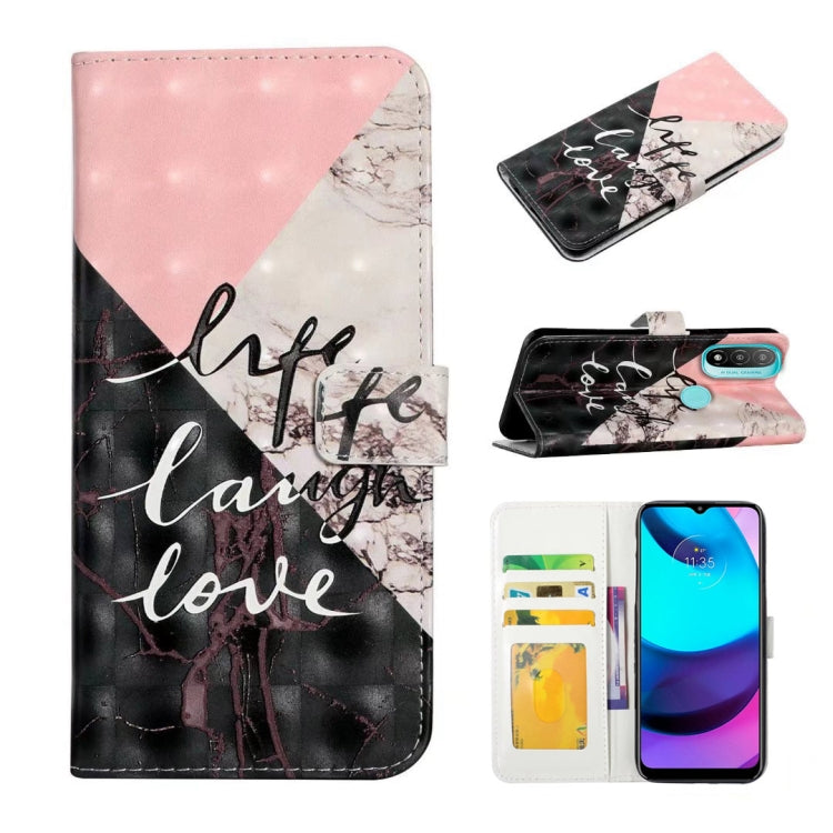 Funda para Motorola Moto E13 de Cuero con Dibujo 3D en Relieve al Óleo (Palabras de Mármol)