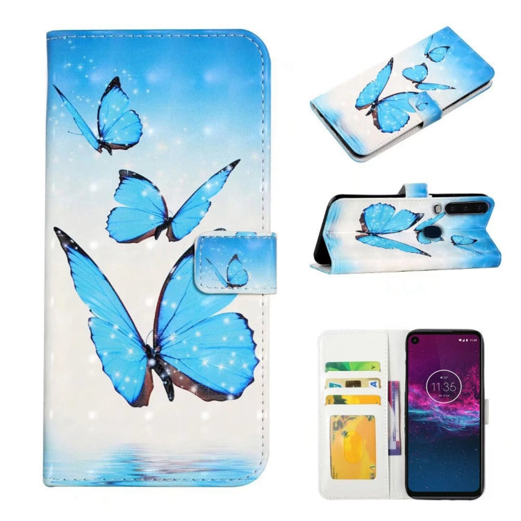 Funda de Cuero para Motorola One Action con Dibujo 3D en Relieve al Óleo (Mariposas Azules)