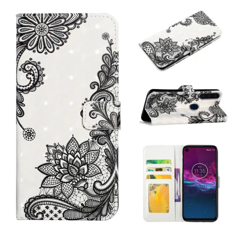 Funda de Cuero para Motorola Moto P40 Power con Dibujo 3D en Relieve (Flor de Encaje)