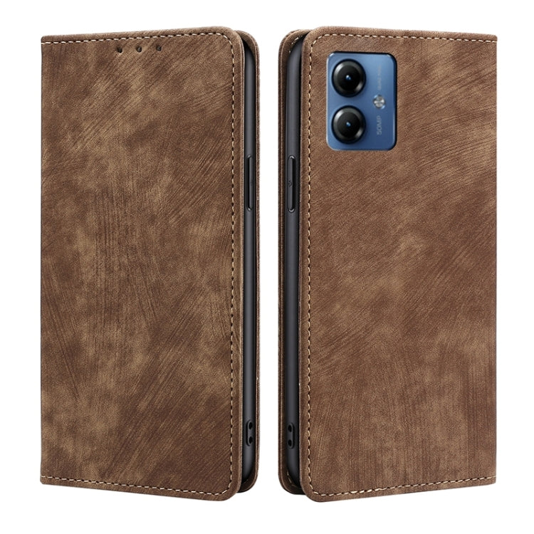 Funda para Motorola Moto G14 4G Rfid de Cuero Magnético con Cepillo Antirrobo (Marrón)