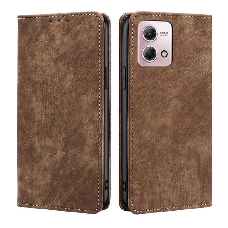 Funda de Cuero Magnética para Motorola Moto G84 5G con Rfid y Cepillo Antirrobo (Marrón)