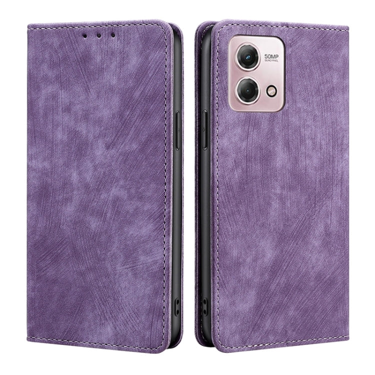 Funda de Cuero Magnética para Motorola Moto G Stylus 4G (2023) con Cepillo Antirrobo Rfid (Púrpura)