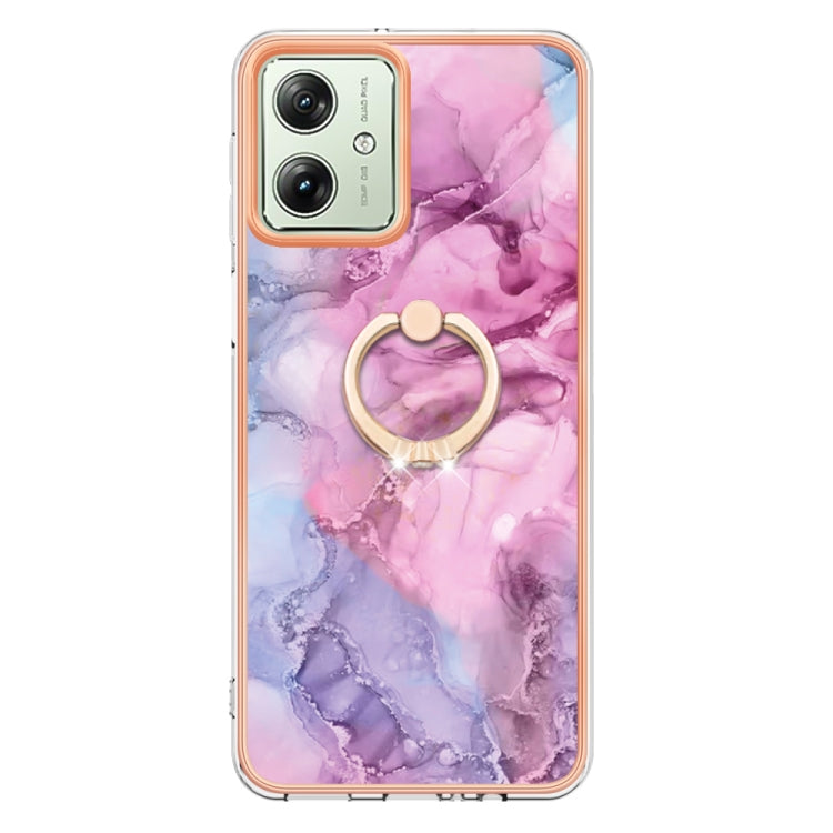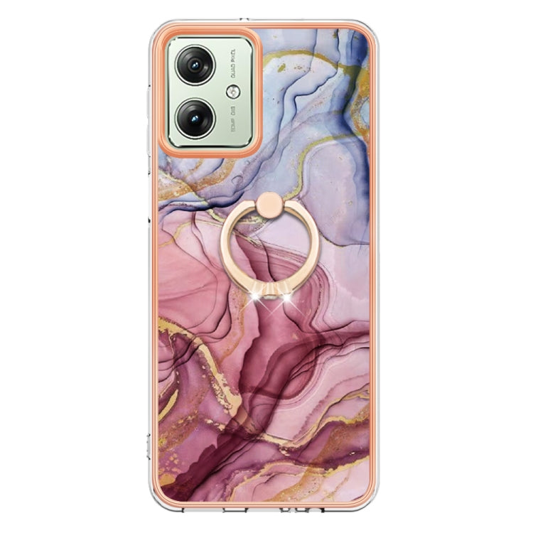 Estuche para Motorola Moto G14 Imd Doble Cara Mármol Galvanizado con Anillo (Rose Red)