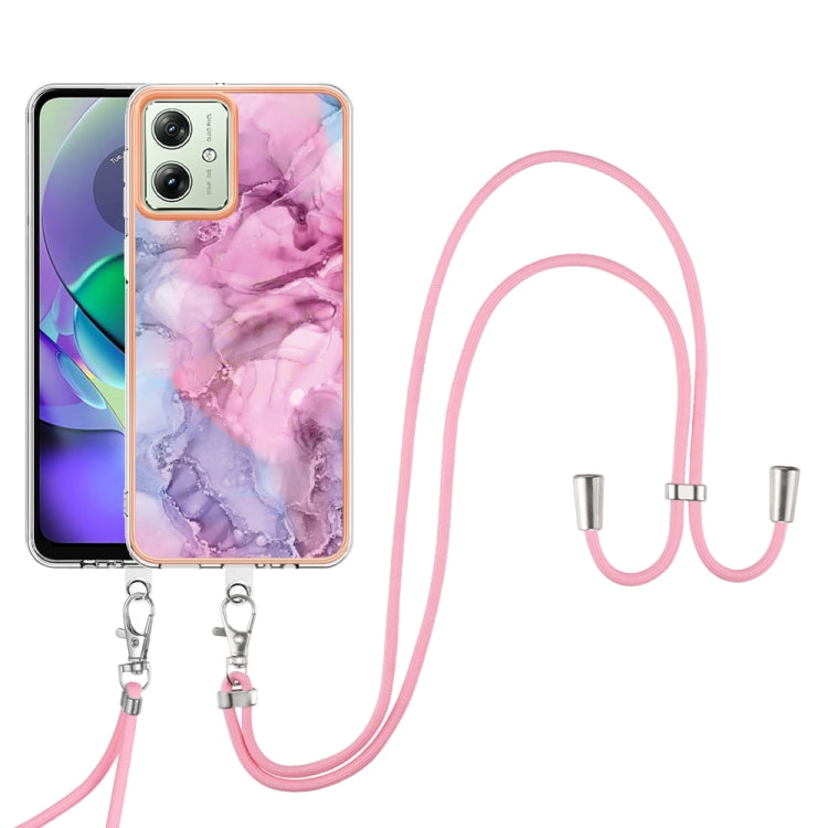 Estuche para Motorola Moto G54 Imd Doble Cara Mármol Galvanizado con Cordón (Rosa)