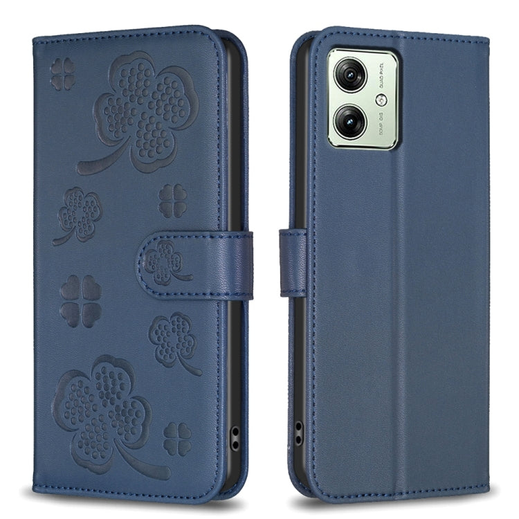 Funda para Motorola Moto G54 5G Eu Edition de Cuero con Relieve de Cuatro Hojas (Azul)