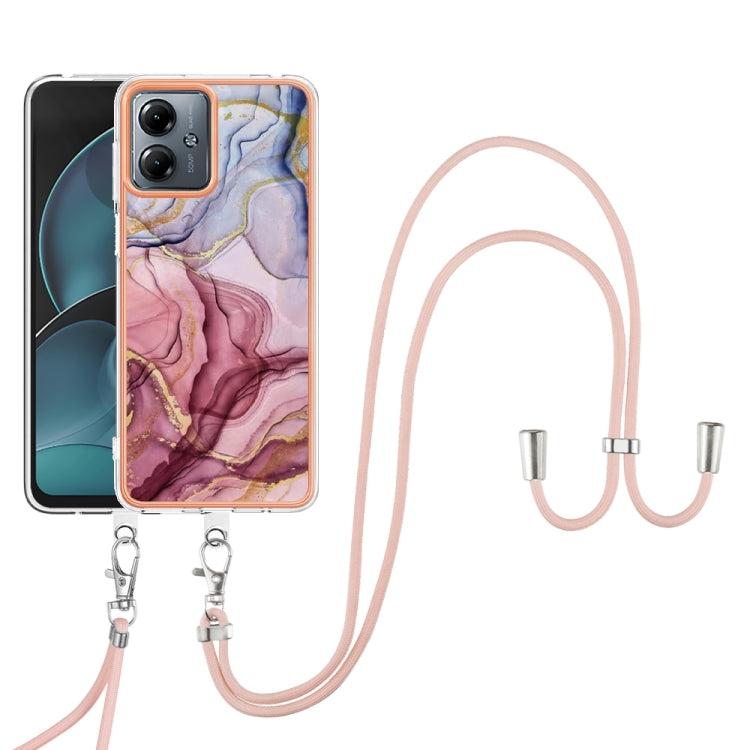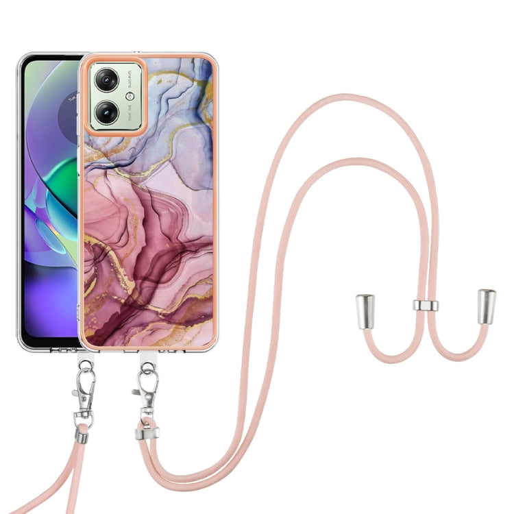 Estuche para Motorola Moto G14 Imd Doble Cara Mármol Galvanizado con Cordón (Rosa)