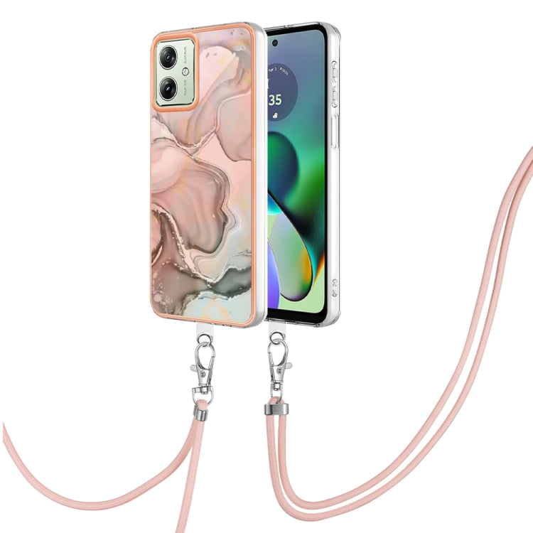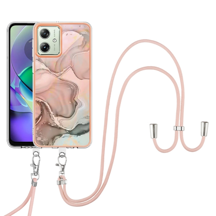 Estuche para Motorola Moto G14 Imd Doble Cara Mármol Galvanizado con Cordón (Oro Rosa)