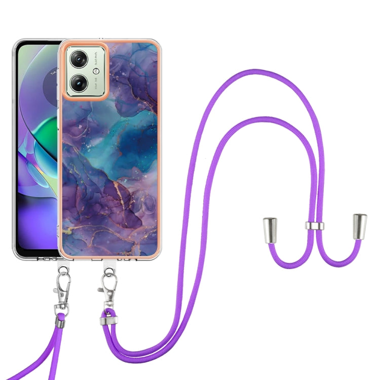 Estuche para Motorola Moto G14 Imd Doble Cara Mármol Galvanizado con Cordón (Azul)