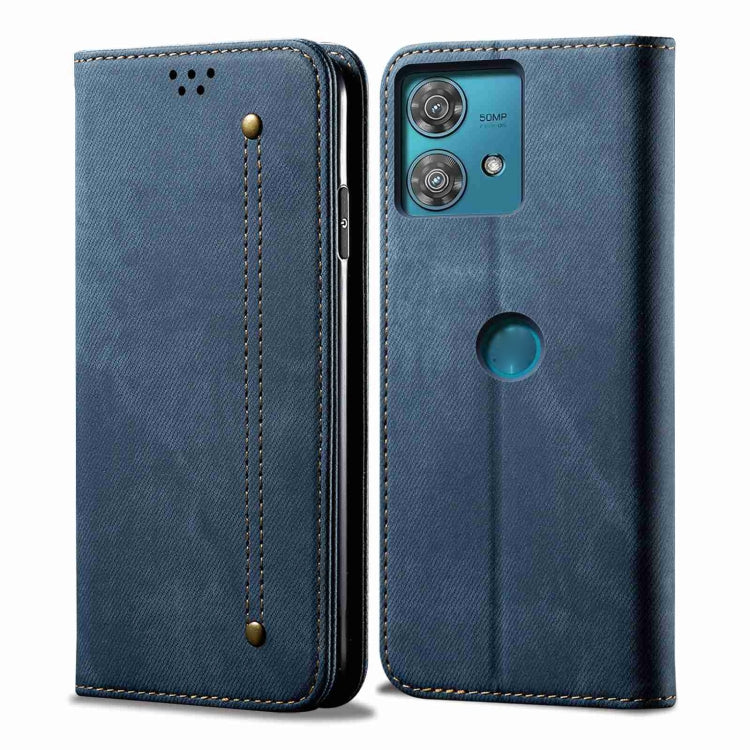 Funda de Cuero con Tapa para Motorola Edge 40 Neo Denim Texture (Azul)
