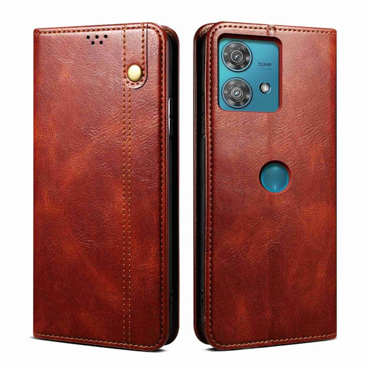Funda de Cuero Motorola Edge 40 Neo Oil Wax Crazy Horse Texture para Teléfono (Marrón)
