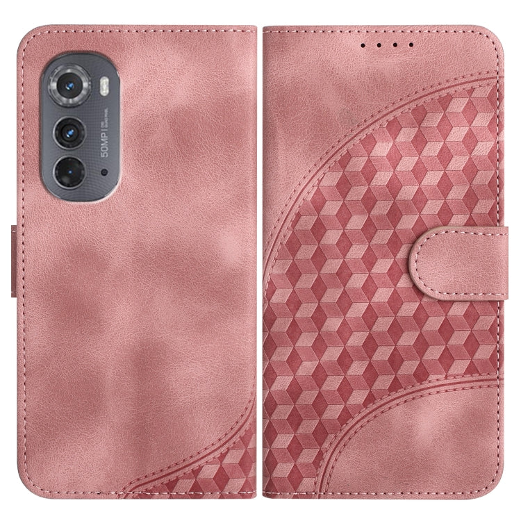 Funda de Cuero Motorola Edge 2022 Yx0060 con Relieve y Cabeza de Elefante con Cordón (Rosa)