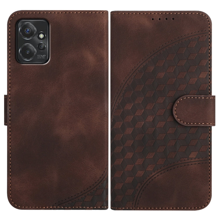 Funda de Cuero Magnético Prensado Cubic Grid para Motorola Edge 40 Pro (Marrón)