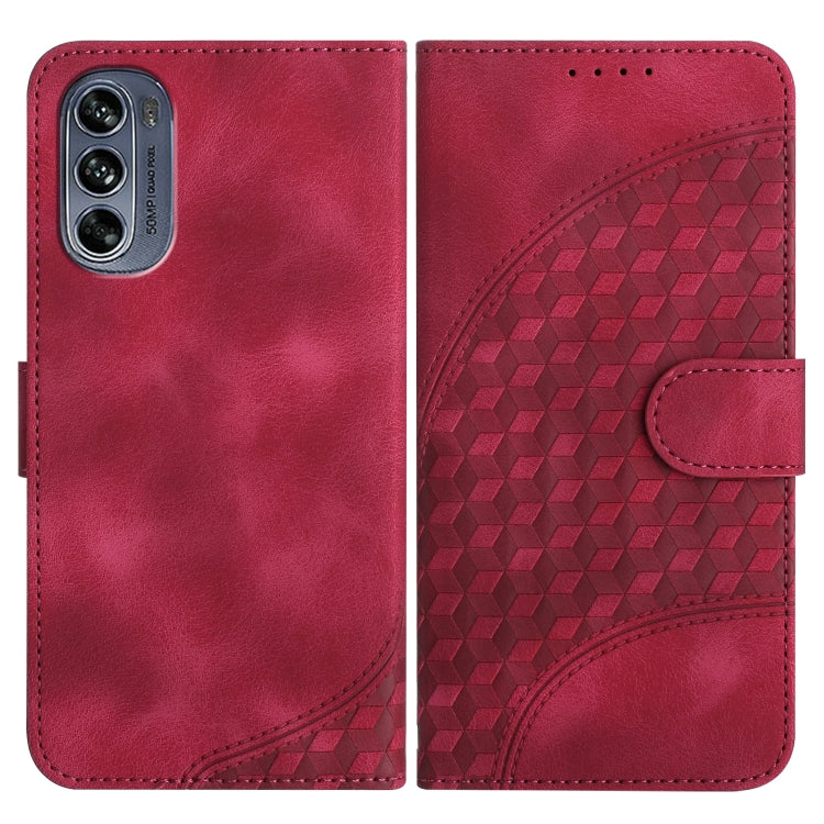 Funda para Motorola Edge 40 Pro Cubic Grid Cuero Magnético Prensado (Rojo)