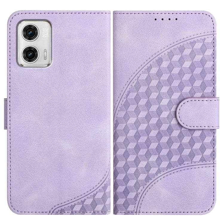 Funda de Cuero Motorola Moto G73 Yx0060 con Relieve y Cabeza de Elefante con Cordón (Púrpura Claro)