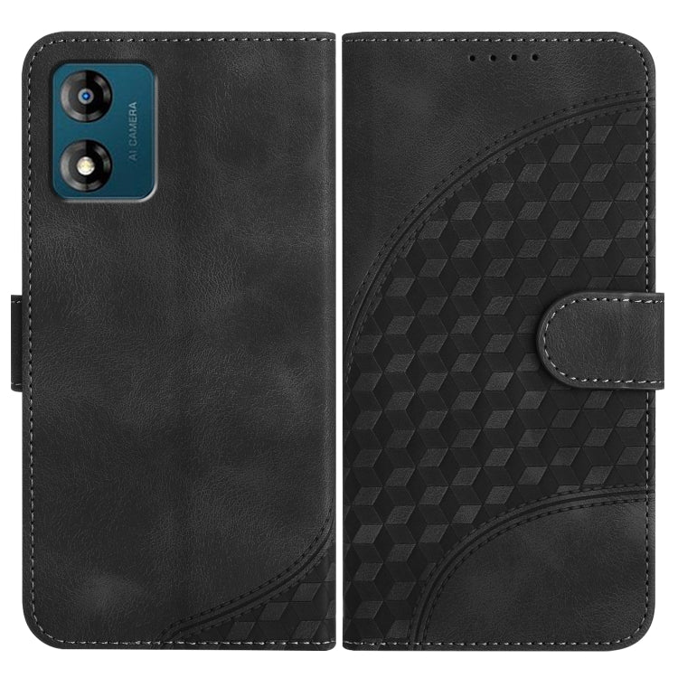 Funda de Cuero para Motorola Moto E13 Yx0060 con Relieve y Cabeza de Elefante con Cordón (Negro)