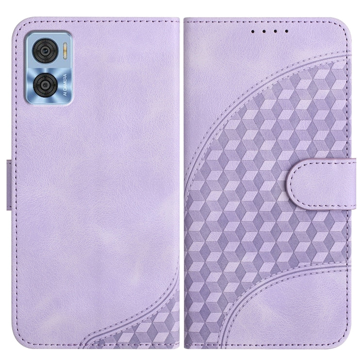 Funda de Cuero Motorola Moto E22 Yx0060 con Relieve de Cabeza de Elefante y Cordón (Púrpura Claro)
