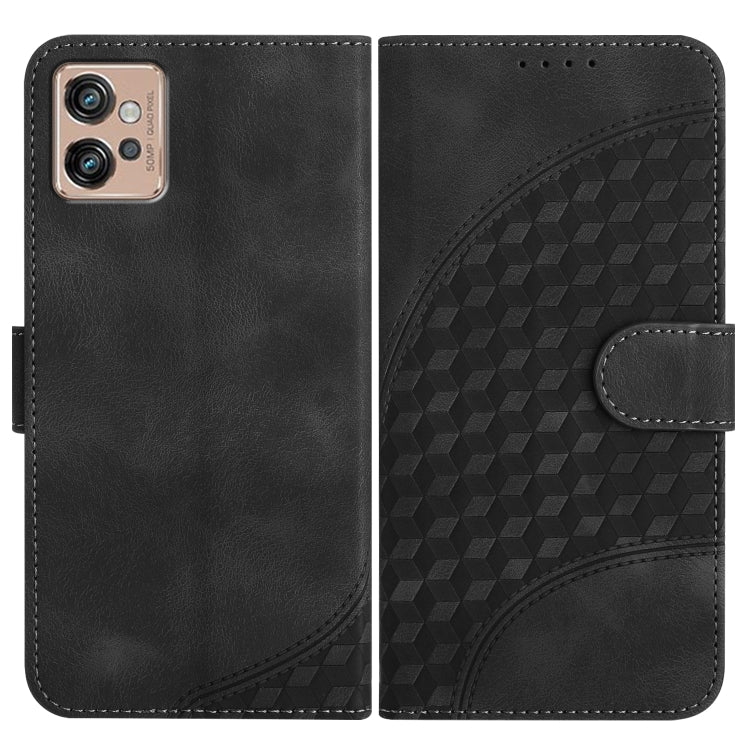 Funda de Cuero para Motorola Moto G32 Yx0060 con Relieve y Cabeza de Elefante con Cordón (Negro)