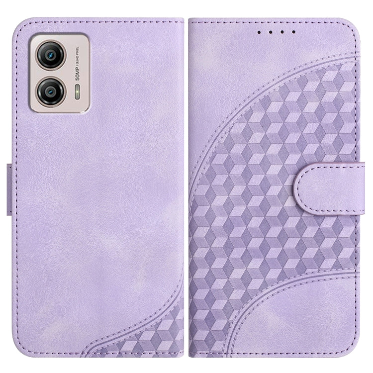 Funda de Cuero Motorola Moto G53 5G G13 G23 Yx0060 con Relieve Elefante y Cordón (Púrpura Claro)