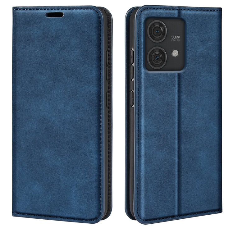 Funda de Cuero para Motorola Edge 40 Neo con Succión Magnética Piel Retro (Azul Oscuro)