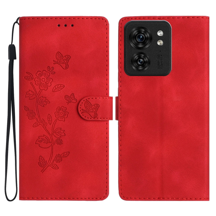 Funda de Cuero para Motorola Edge 40 con Estampado de Mariposa y Flores (Rojo)