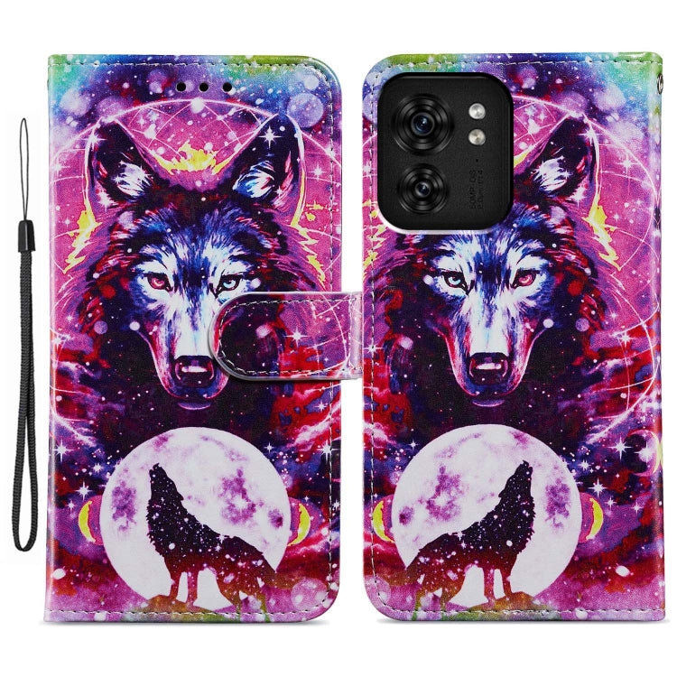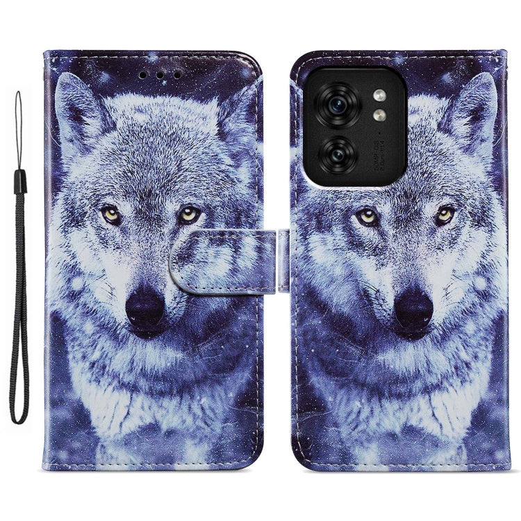 Funda de Cuero para Motorola Edge 40 con Tapa Horizontal y Patrón Pintado (Lobo Blanco)