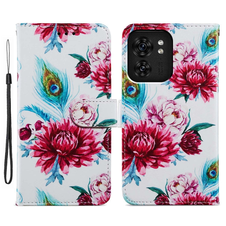 Funda de Cuero para Motorola Edge 40 con Tapa Horizontal y Patrón Pintado (Flor de Pavo Real)